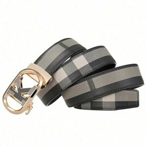 Bロゴ風 オートロックベルト メンズ チェック柄 ゴールド762442