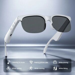 ホワイト Bluetooth5.0 スマートグラス IPX4防水812445