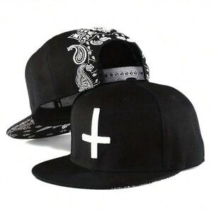 バンダナ柄×逆十字 スナップバックキャップ 黒23052