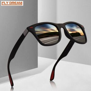 激安 新品 送料込み UV400 偏光レンズ ミラー サングラス 黒/赤841378