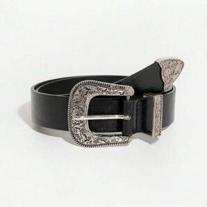 彫刻クロスバックル 型押しベルト メンズ 黒 ゴシック445277