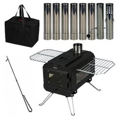 【迅速に発送】【三面窓で、癒される。】 Neer マグマストーブ 煙突8本付属 薪ストーブ 収納バッグ付き キャンプ アウトドア スパークアレスター 焚き火台 焚火台 ストーブ コンパクト 薪暖炉 (ブラック) f0f05370