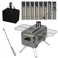 【迅速に発送】【三面窓で、癒される。】 Neer マグマストーブ 煙突8本付属 薪ストーブ 収納バッグ付き キャンプ アウトドア スパークアレスター ステンレス 焚き火台 焚火台 ストーブ コンパクト 薪暖炉 (シルバー) b6457840