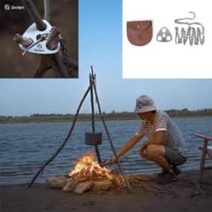 トライポッド リング 焚き火三脚たきび 自在鉤 居炉裏 焚火吊り 野営道具 野外