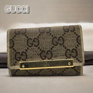 GUCCI グッチ キーケース 三つ折り シグネチャー ブラウン821061