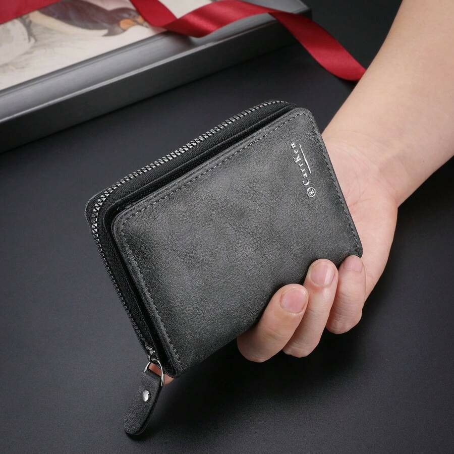 レトロ ヴィンテージ 多機能 ジッパー財布 トレンディ カードホルダー シンプル ビジネス カジュアル 二つ折り財布404310