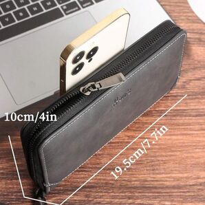 スタイリッシュ レザー製 大容量 デイリー メンズ ロングウォレット 長財布 ジッパー ビジネス お洒落 ブラック 黒818900