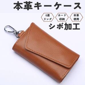 キーケース シボ ブラウン スマート ウォレット カラビナ付き 6連