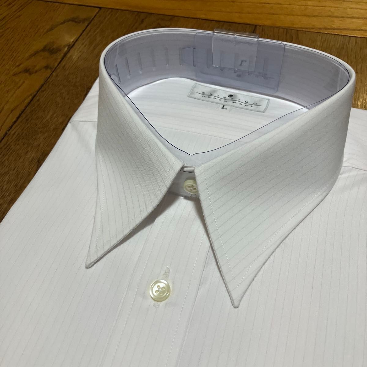 SHIRTING ORDER MADE 白地×紫ストライプワイシャツ L(41-82)レギュラーカラー イージーケア