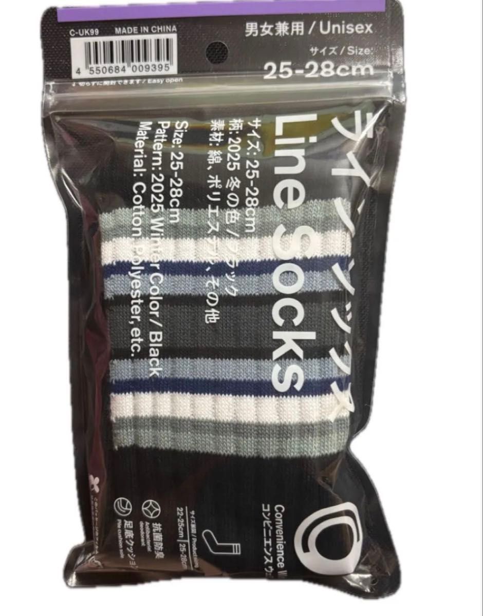 ファミマ ラインソックス 靴下 25〜28㎝ ブラック1足 冬の色
