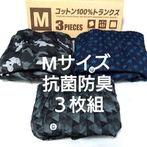 ②メンズ 紳士 トランクス Mサイズ 抗菌防臭 サイズМ 綿100% 3枚組