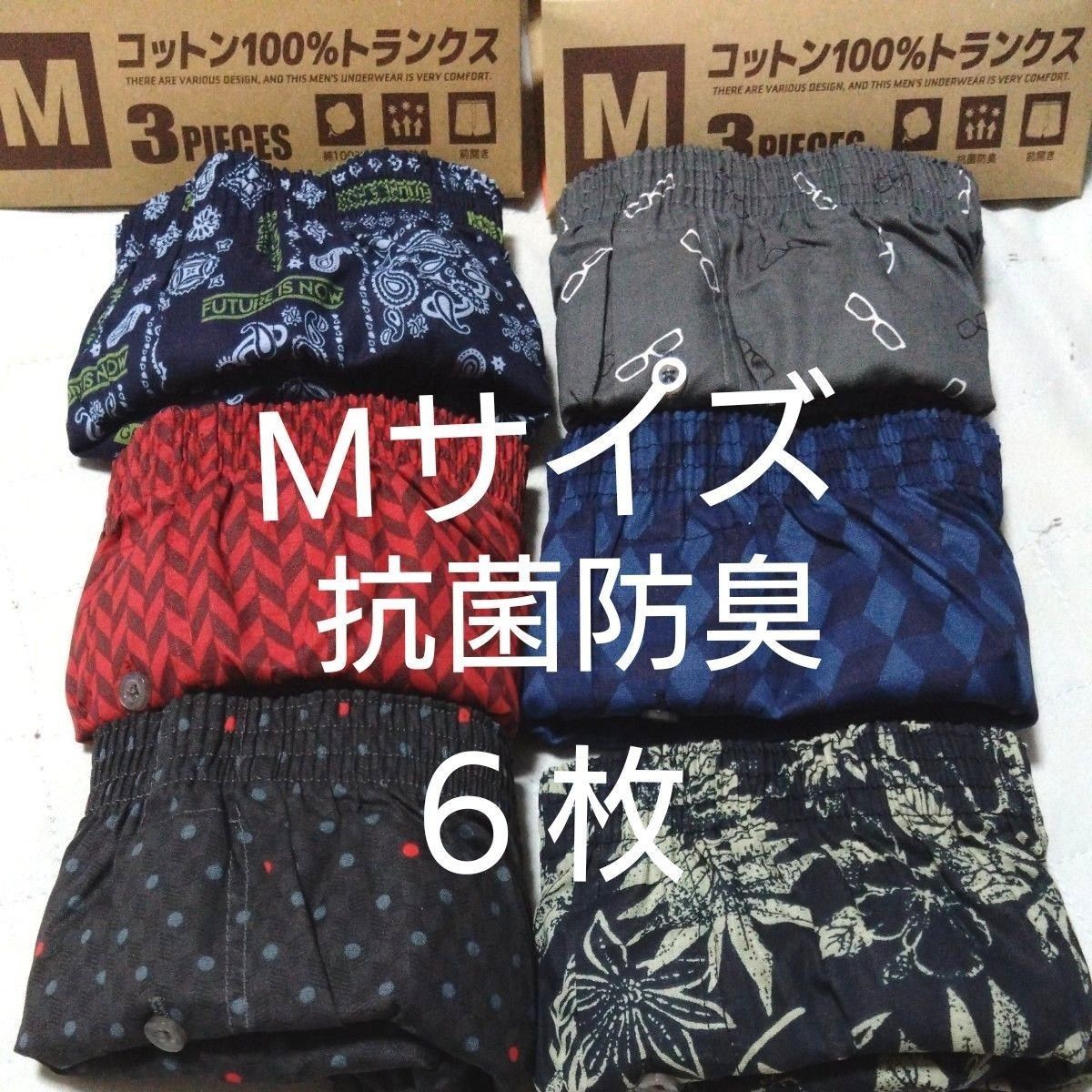 ①メンズ 紳士 トランクス Mサイズ 抗菌防臭 サイズМ 綿100% 計6枚