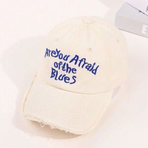 刺繍入りラフエッジキャップ(メンズ レディース)帽子 ホワイト48,217
