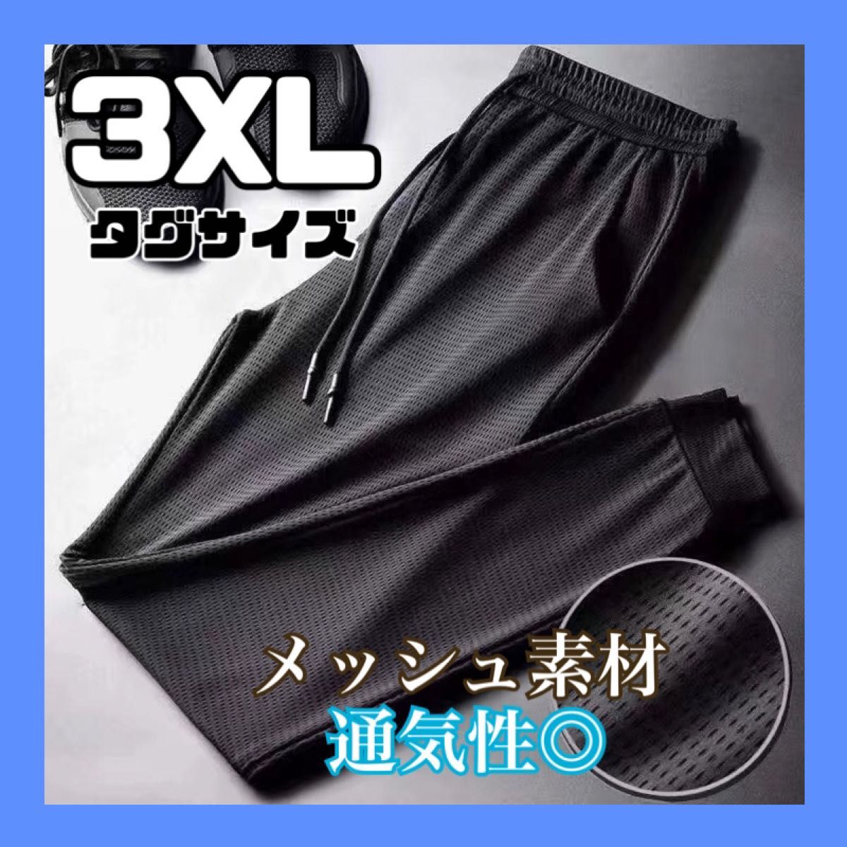 ジョガーパンツ 黒 ブラック 3XL メンズ メッシュ 軽量 通気性抜群