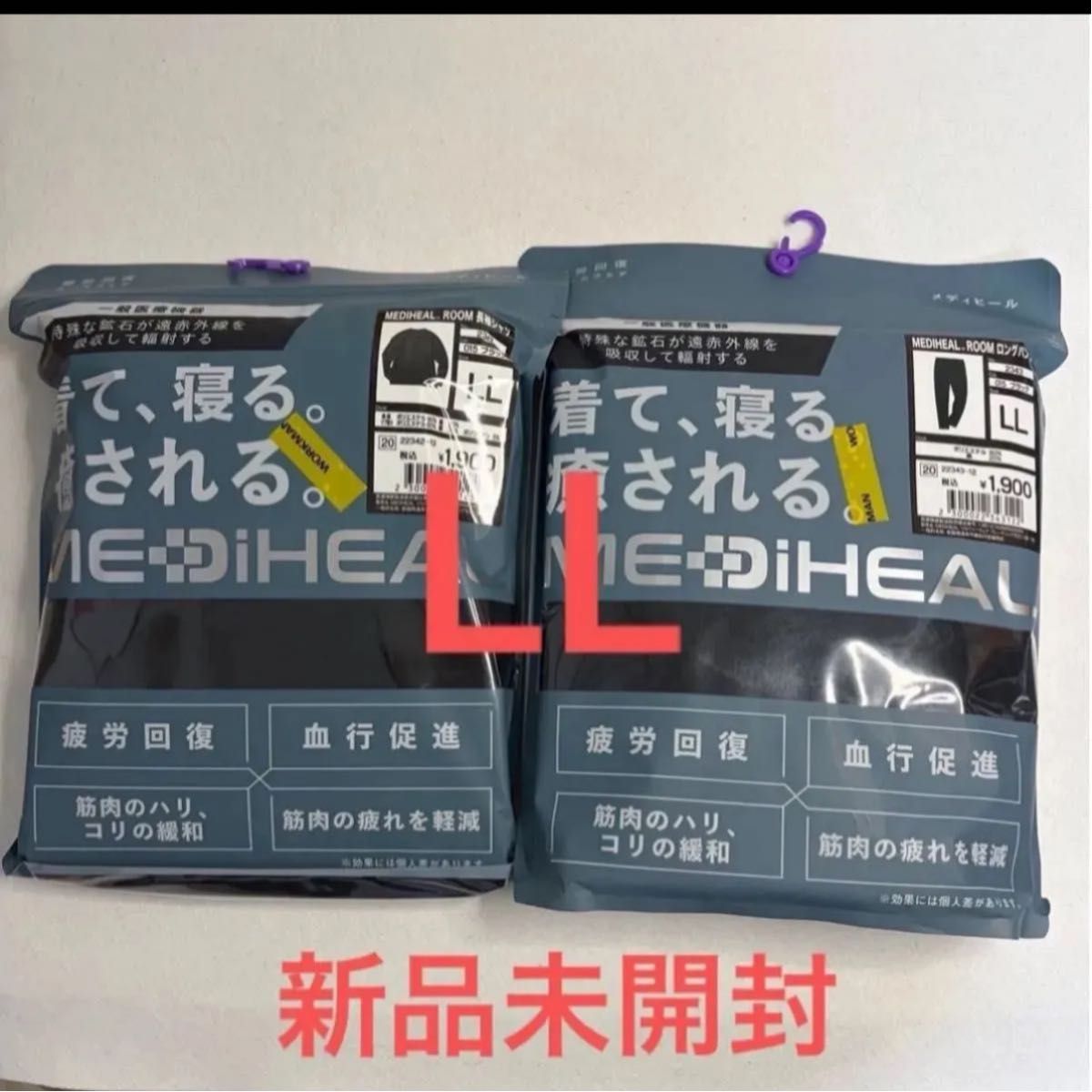 ワークマン メディヒール メンズ ルーム長袖シャツ ロングパンツ ブラック LL WORKMAN リカバリーウェア