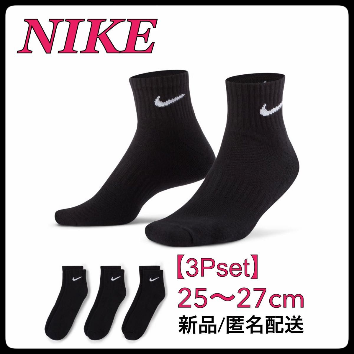 【新品】25〜27cm【3足組】ナイキ ソックス 靴下 SX7667 黒 ブラック 靴下 ナイキ ソックス 黒