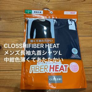 新品即決送料無料♪CLOSSHI FIBER HEAT メンズ あったかモイスト 長袖丸首シャツ Lサイズ 薄くてあたたかい 中紺色
