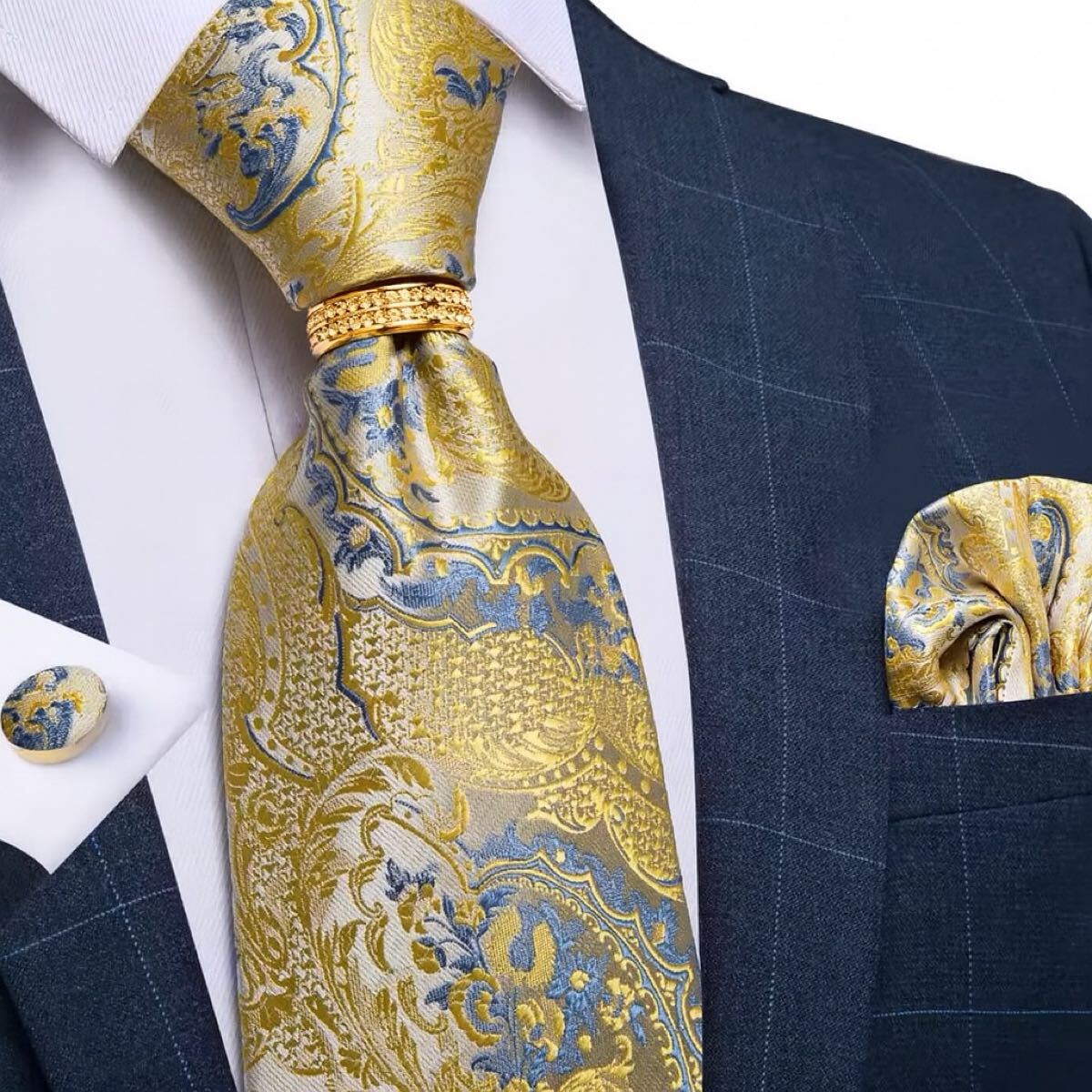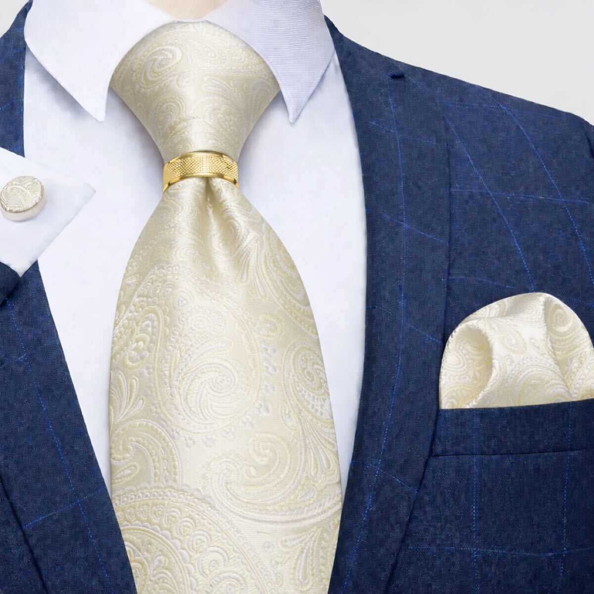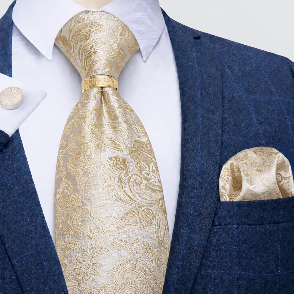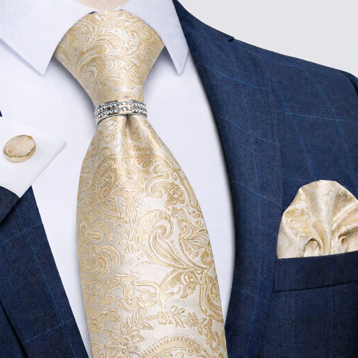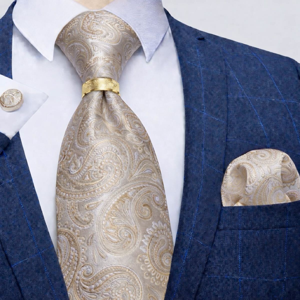 【4点セット】ネクタイペイズリーストライプ結婚式入学式卒業式シャンパンゴールド金パーティ