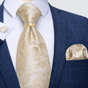 【4点セット】ネクタイペイズリーストライプ結婚式入学式卒業式ベージュ金ゴールドパーティ