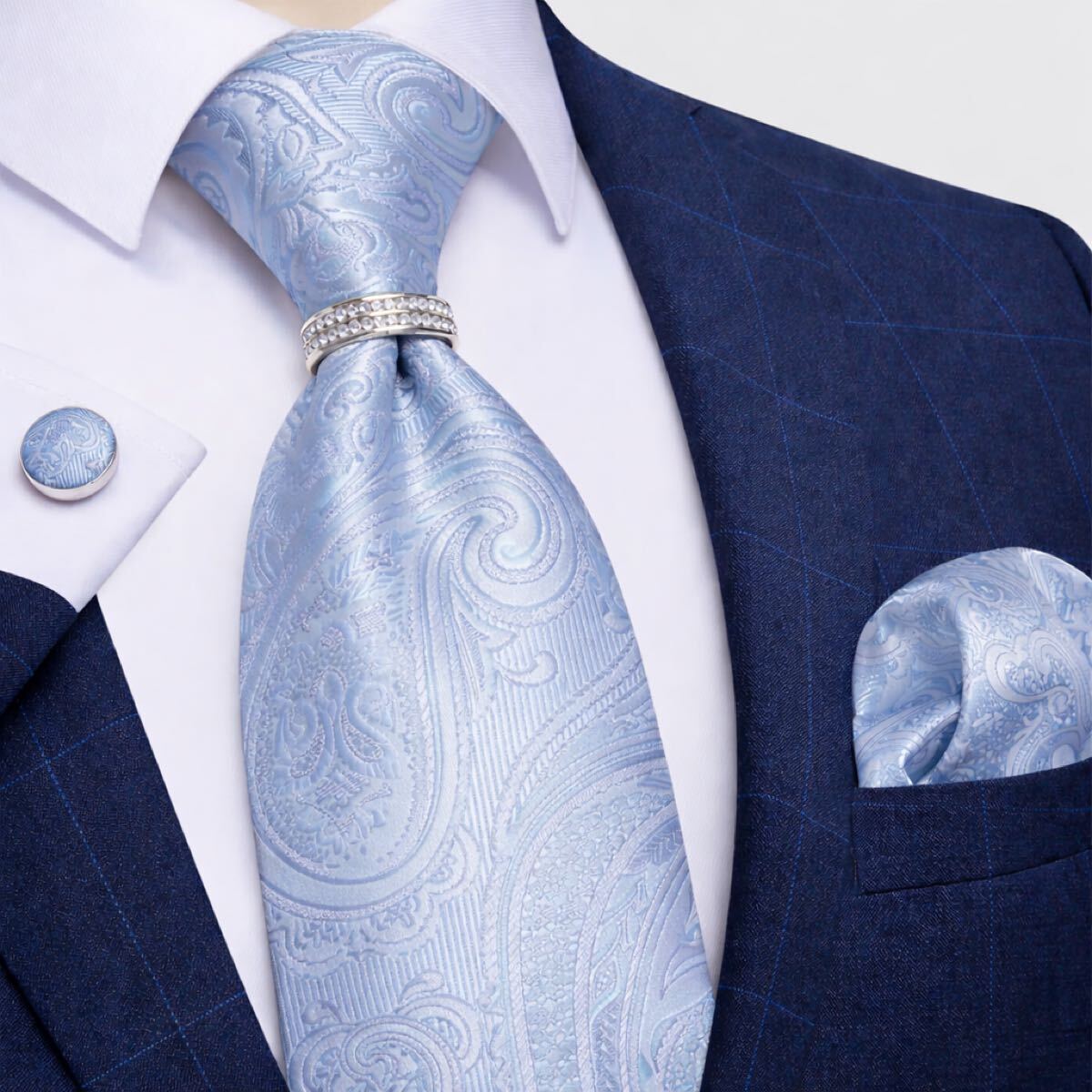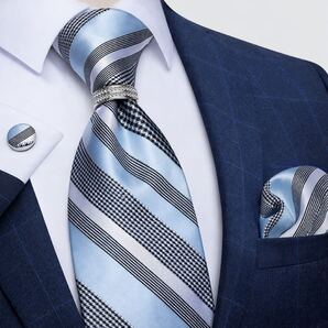 【4点セット】ネクタイペイズリーストライプ結婚式入学式卒業式水色青ブルー白ホワイト銀シルバー パーティ ビジネス 入社式 就活 面接