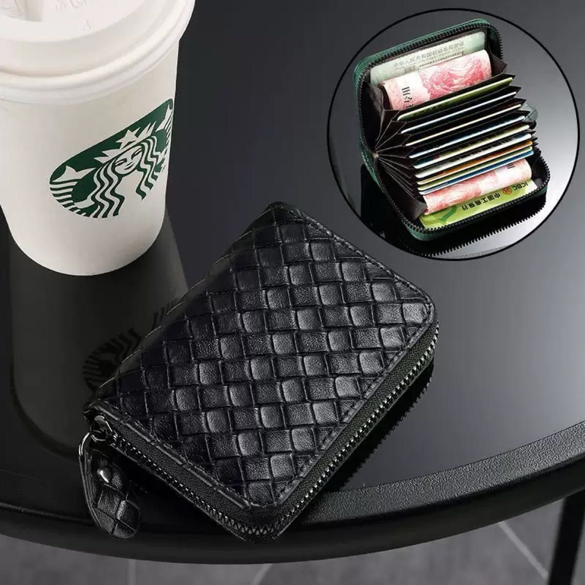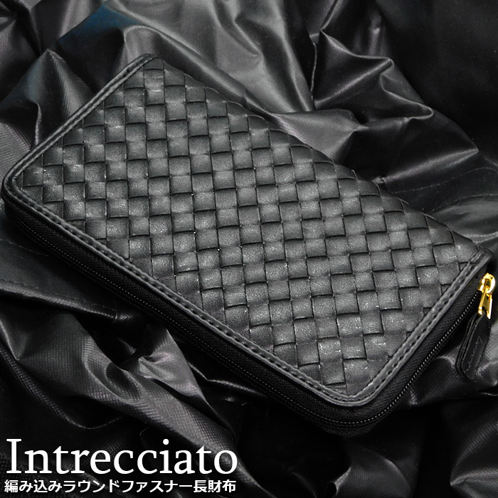 送料無料 編み込み イントレチャート 財布 メンズ レディース ラウンドファスナー 長財布 編みこみ 安い オシャレ ブラック 黒 新品☆