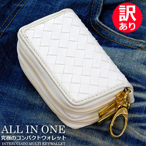 送料無料 訳あり イントレチャート 編み込み キーウォレット メンズ レディース キーケース コインケース スマートキー 財布 ホワイト 白☆
