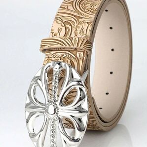 クロスバックル 型押しベルト メンズ ベージュゴシック系172753