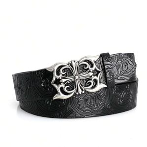 彫刻クロスバックル 型押しベルト メンズ 黒 ゴシック597367