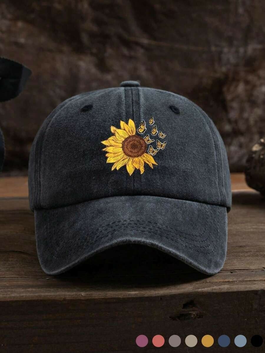 ひまわり刺繍 キャップ 帽子 調整可 ユニセックス800230