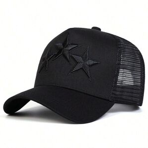 星刺繍メッシュトラッカー メンズ レディース 帽子 メッシュキャップ ブラック 黒340082