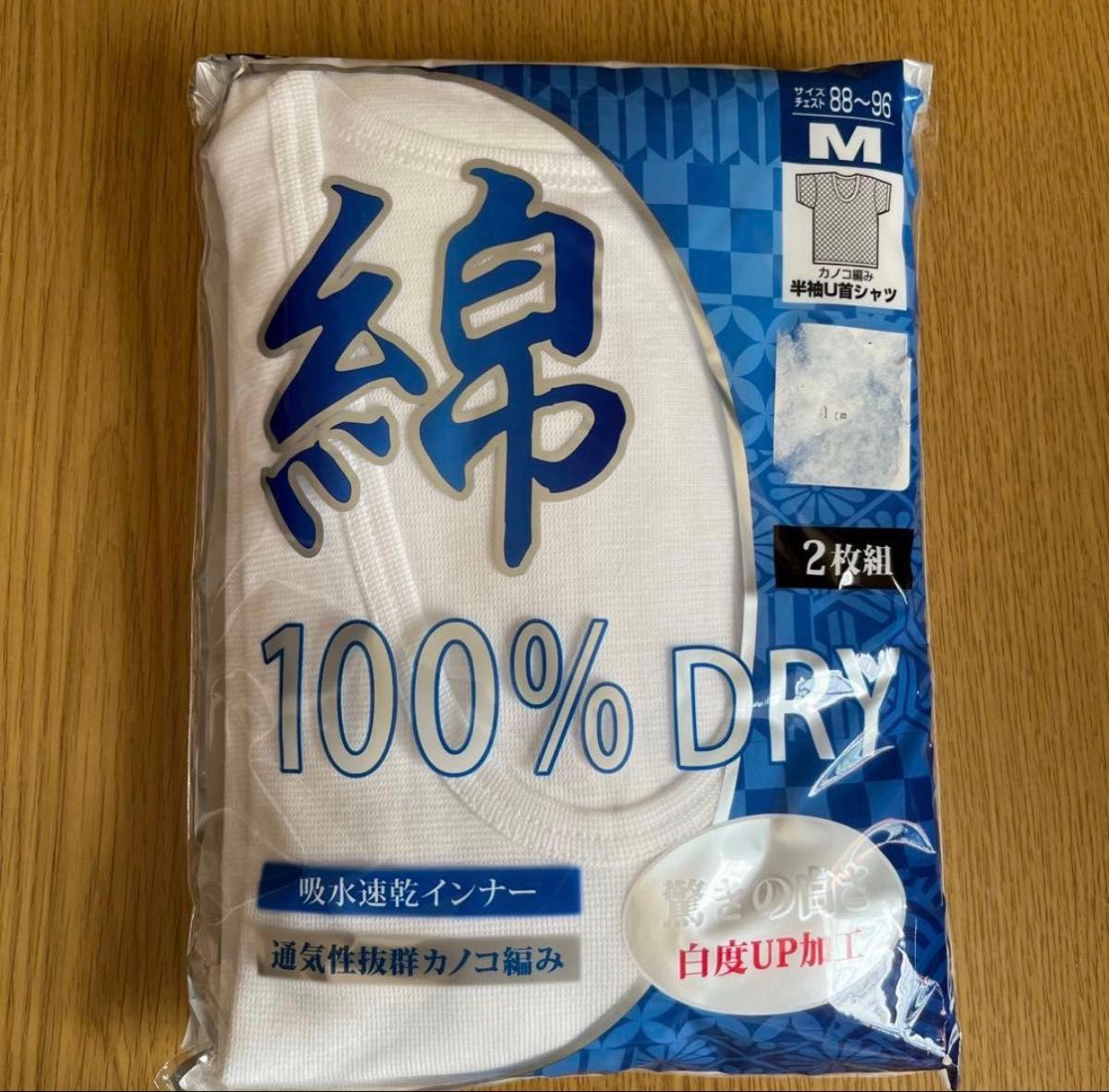 綿100% DRY 半袖U首シャツ Mサイズ 2枚組 吸水速乾 白度UP加工
