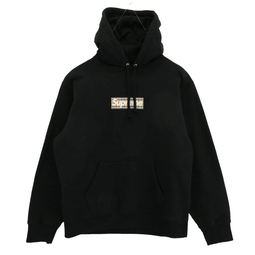 SUPREME 美品 × BURBERRY Box Logo Hooded Sweatshirt Black バーバリー ボックスロゴ フーデッド スウェットシャツ パーカー プルオーバー フーディ パーカー コットン ブラック ロゴ ABランク 中古 鑑定済