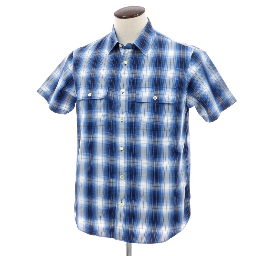 【中古】ザノースフェイス THE NORTH FACE ナイロン チェック ボタンダウン 半袖シャツ ウルトラマリンブルーxネイビー【サイズM】【メンズ】