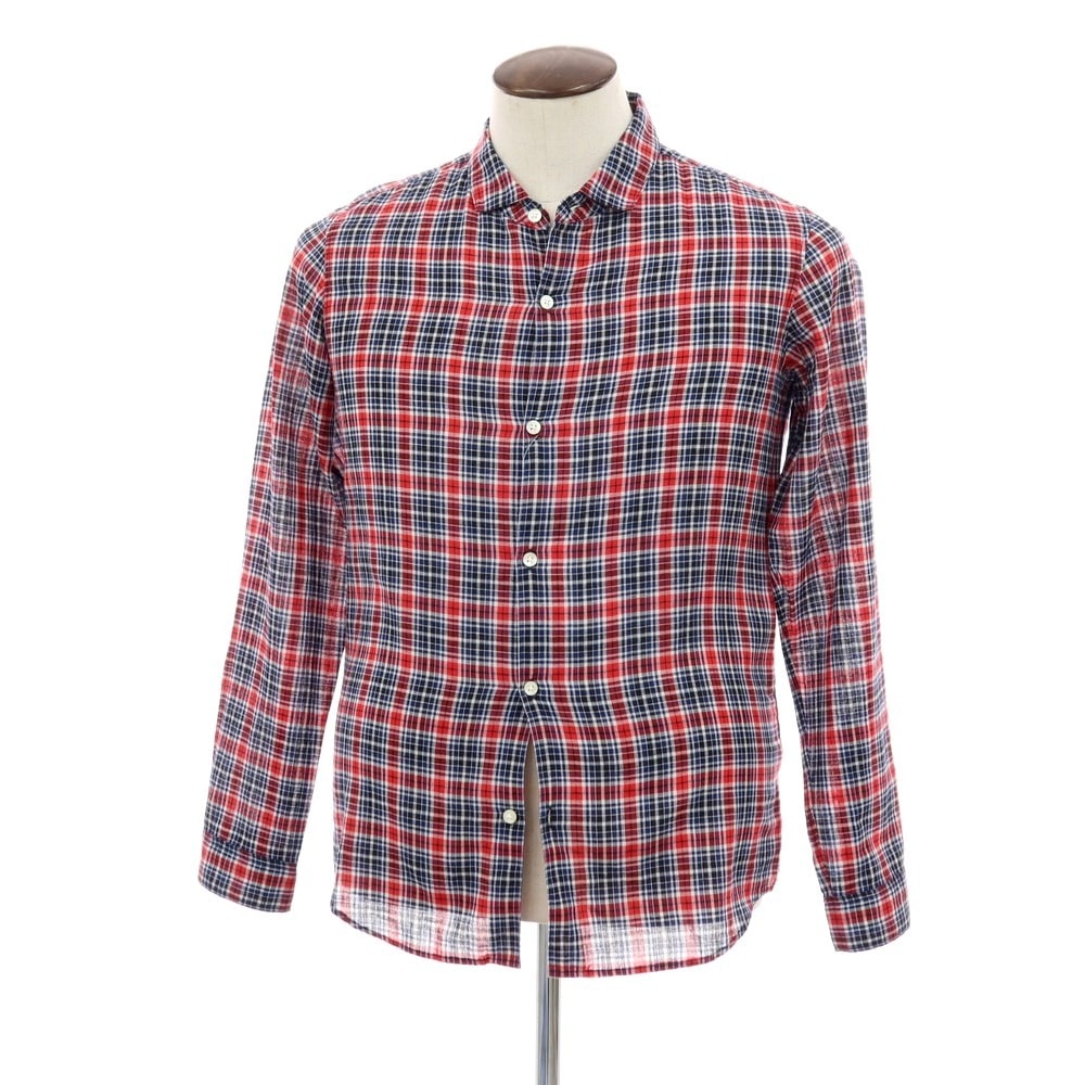 【中古】ザノースフェイス THE NORTH FACE ポリエステルコットンリネン チェック カジュアルシャツ レッドxネイビー【サイズL】【メンズ】