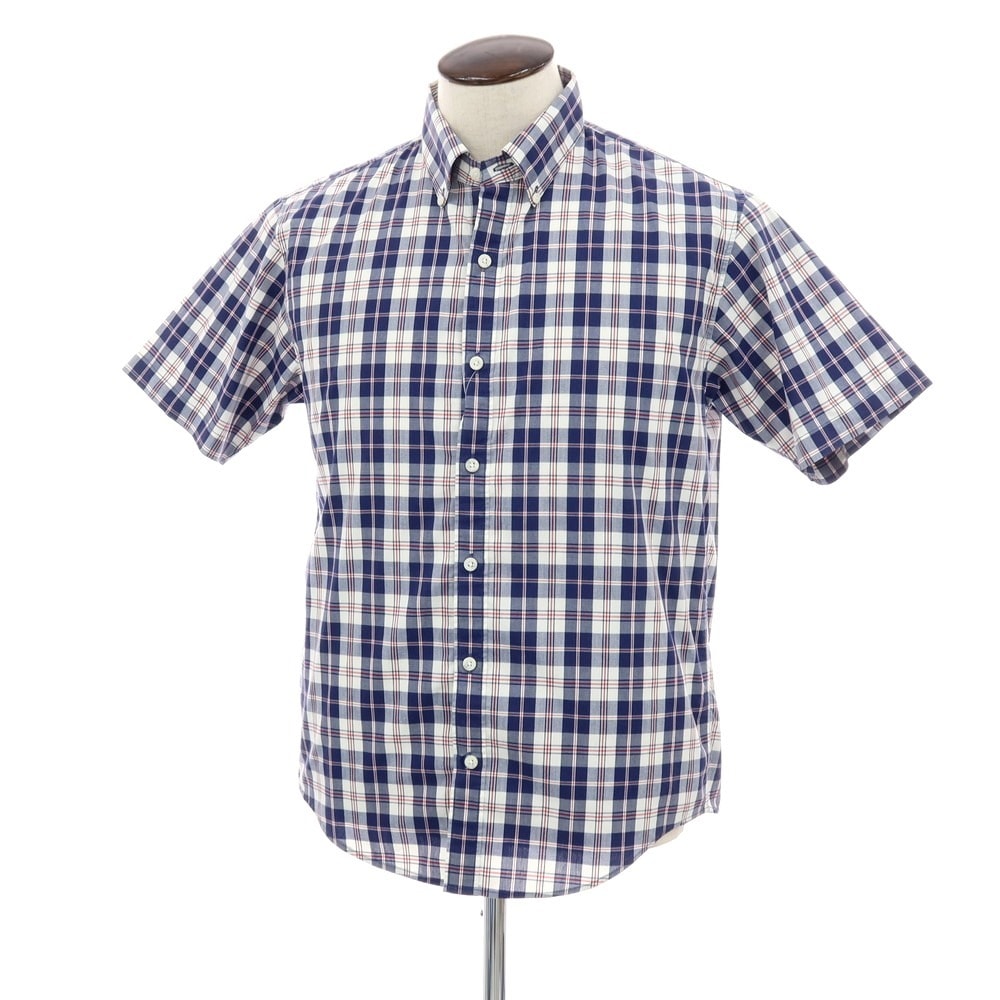 【中古】ザノースフェイス THE NORTH FACE ポリエステルコットン チェック ボタンダウン 半袖シャツ ネイビーxホワイト【サイズL】【メンズ】