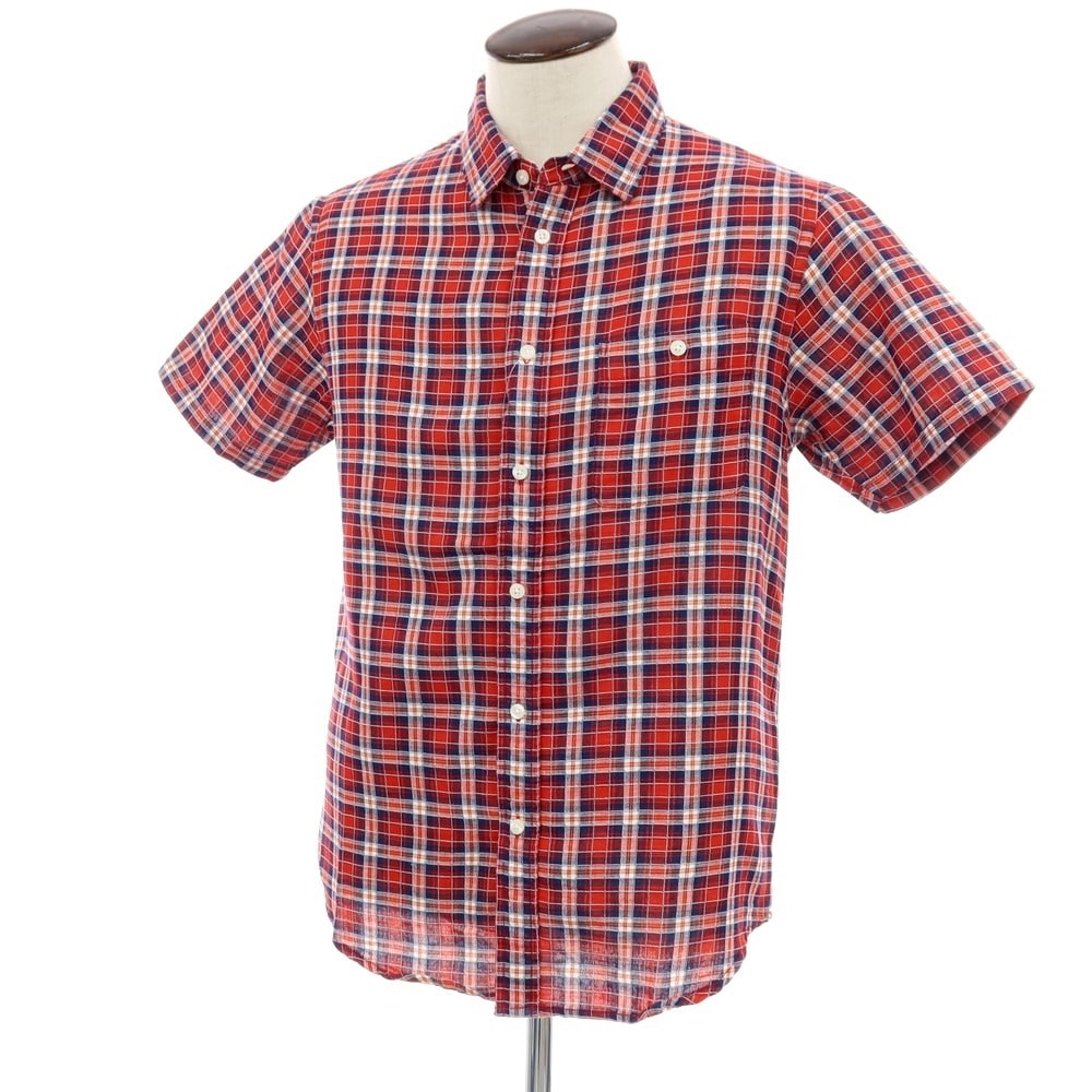 【中古】ザノースフェイス THE NORTH FACE コットンポリエステル チェック 半袖シャツ レッドxネイビー【サイズL】【メンズ】